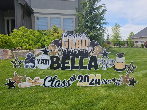 - Greeting may be modified due to yard size and condition. If you are unsure if your yard will accommodate the size greeting you’ve ordered, please email us ahead of time with a photo just so we can ensure you’ve selected an appropriate package.