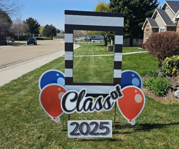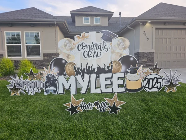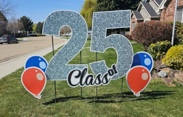 Our mega numbers are over 4′ tall! Options include Silver Glitter, Gold Foil, or Black for the graduation year of your choosing. Exact graphics will vary and will match the main sign. Subject to availability.